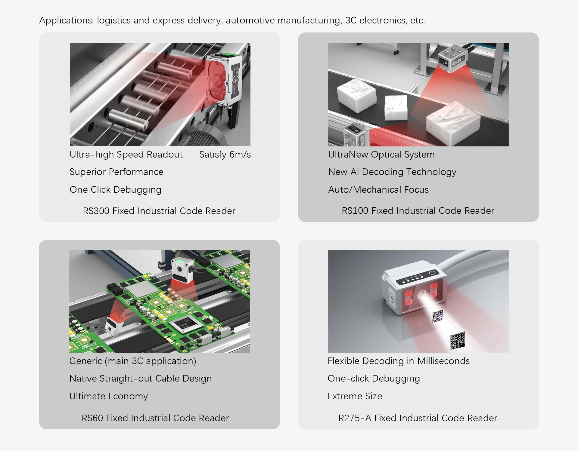 Newly upgraded optical system, more flexible configuration, with super resolution and large field of view lens, supports reading difficult to read code samples at a distance and multi-code samples at a close distance;